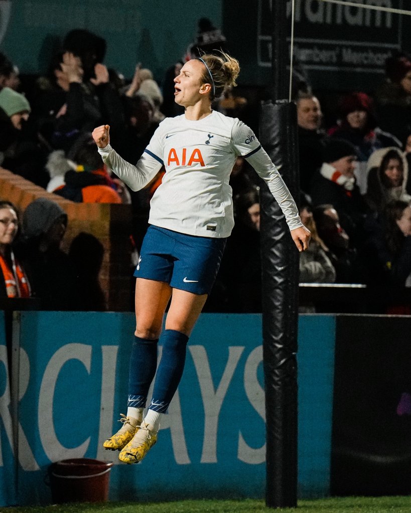 After racking up a quick six goals in the WSL (seven in all competitions), Martha Thomas had been on a brief dry spell, not finding the net in six games for Spurs. She has also been on the losing side in a couple of Scotland internationals. So, it was great to see her in the box, from where she sent in a powerful and perfectly placed header for the first goal. We need our scorers to be on form and if this gives her an extra boost of confidence before NLD Part II it’s all to the good.
