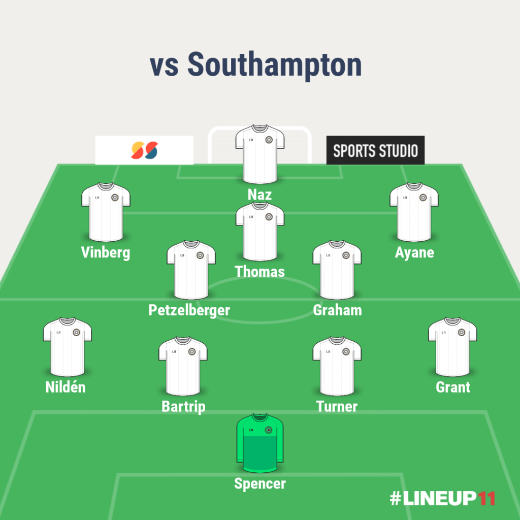Three of our new signings were given starts for the first time, Nildén played 45 minutes, while Grant and Vinberg played the whole game. Grant moved over to the left back position at half time, when James came on. We also saw Turner play the full 90 minutes, after being subbed at half time against West Ham, Becky Spencer also got a start after not being on the bench in the last game, due to injury.